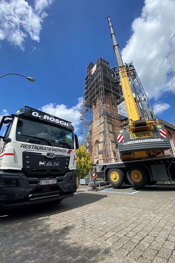 De voorbereidende werken aan de torenspits van de kerk zijn succesvol afgerond.